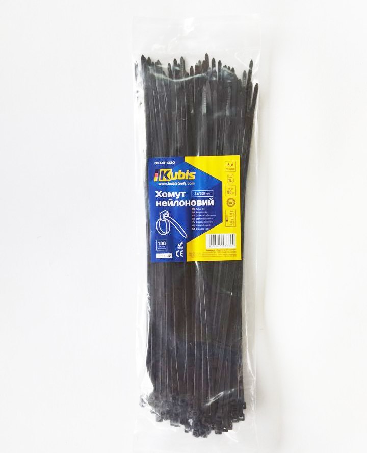 Хомут нейлововий 4,6х500 мм чорний 100 шт, 01-09-1450 Kubis